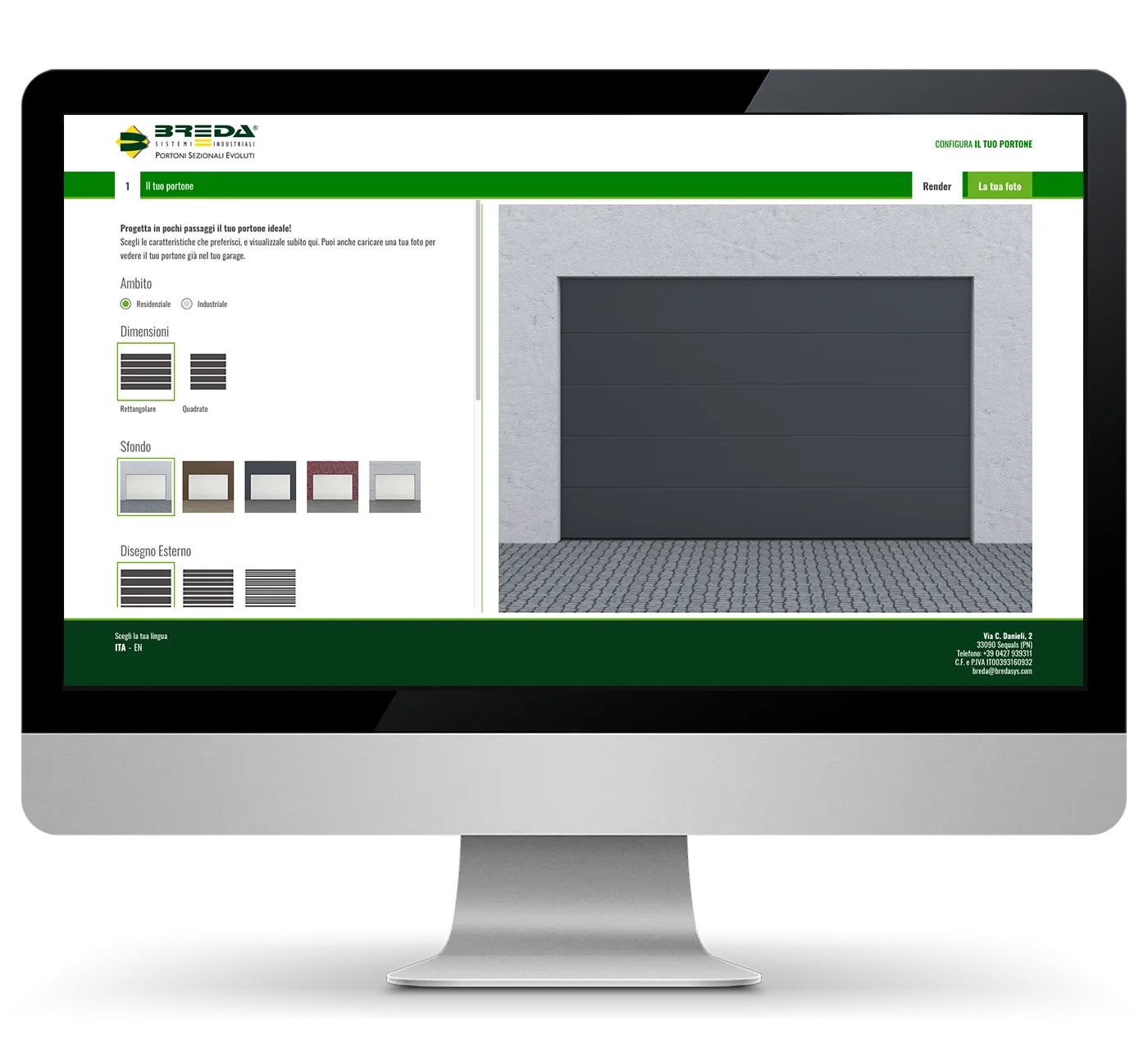 Scegli le caratteristiche che preferisci e visualizzale subito online. Crea con facilità il portone perfetto per il tuo garage!