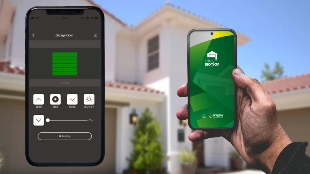 Le WiFi intégré se connecte au réseau domestique et vous permet de gérer chaque automatisation directement via smartphone. Depuis l’application dédiée, il est possible de visualiser l’état de la porte en temps réel, de définir un pourcentage d’ouverture, de commander levage et abaissement des panneaux, ainsi que l’allume et l’éteint de l’éclairage LED.